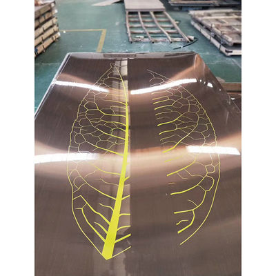 Выгравированные узоры создаются путем выборочного нанесения защитной кислотоустойчивой пленки на назначенные участки и кислотного выгравирования незащищенных участков.Изменить цвет на тусклый серебристый серыйПокрытие может быть окрашено до или после огранки.Он широко использовался для декоративных применений., такие как двери лифтов, стеновые панели, вытяжка и отделка.